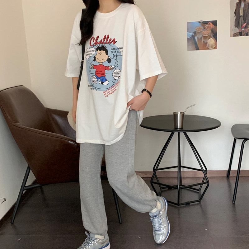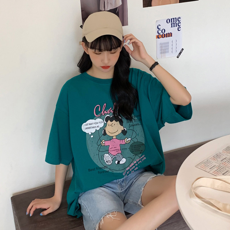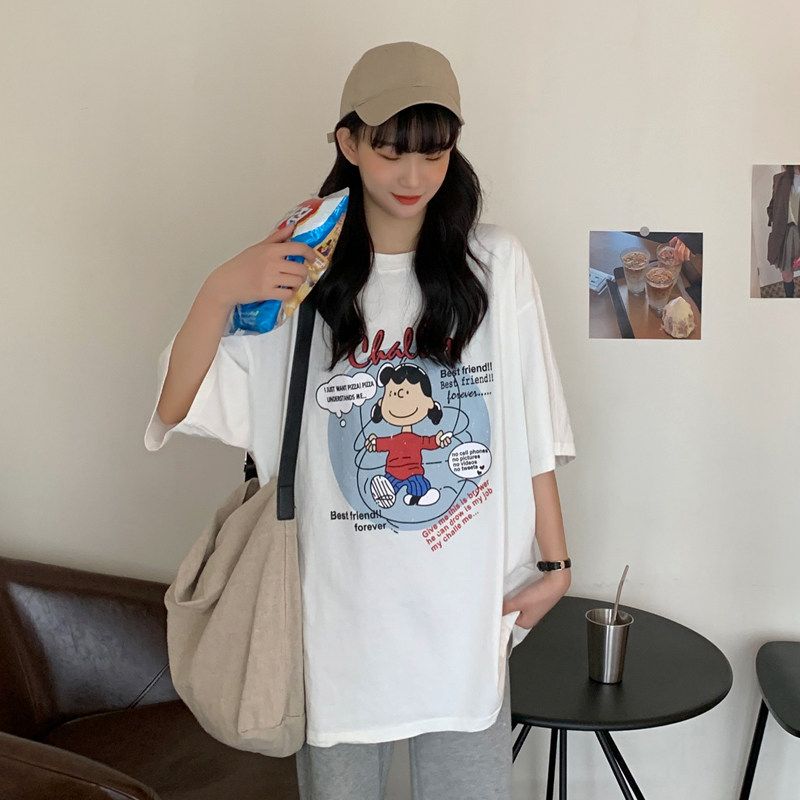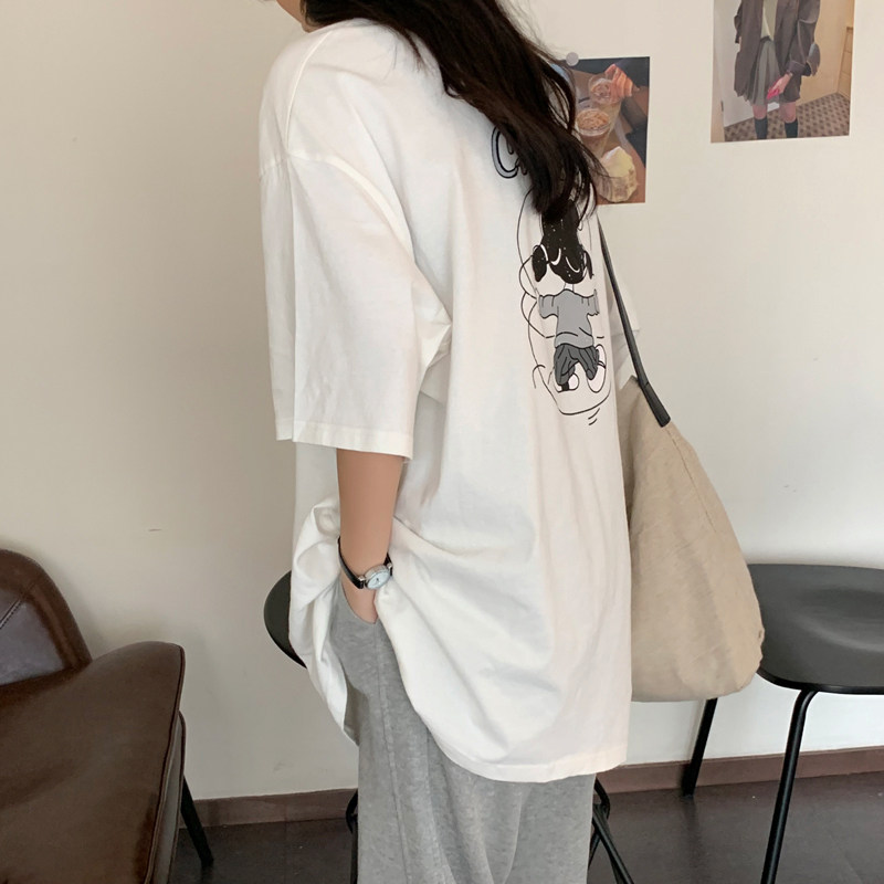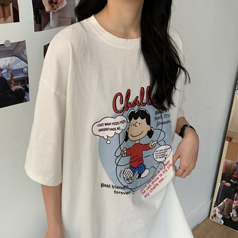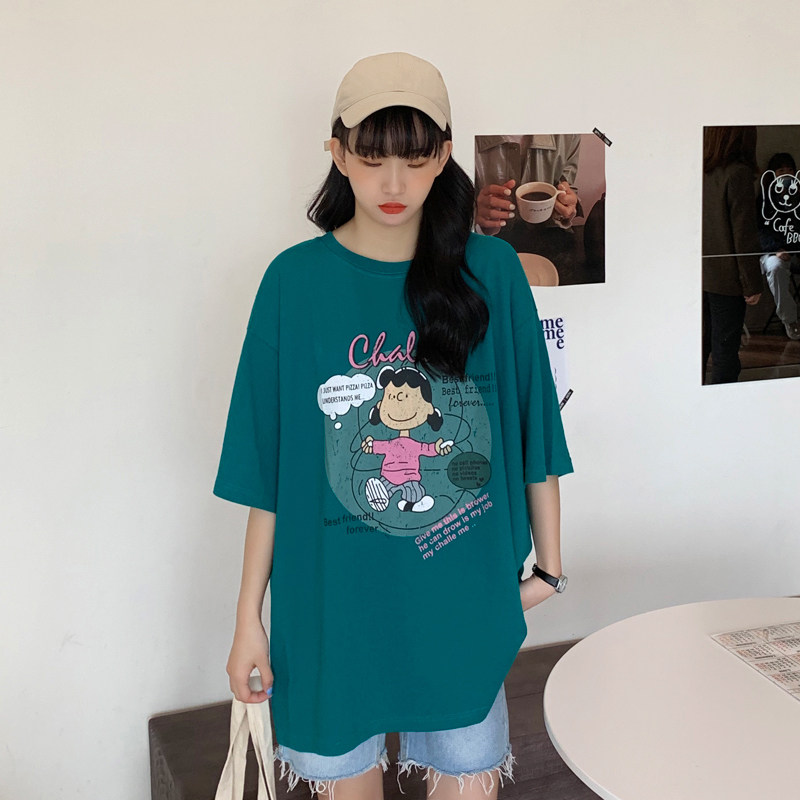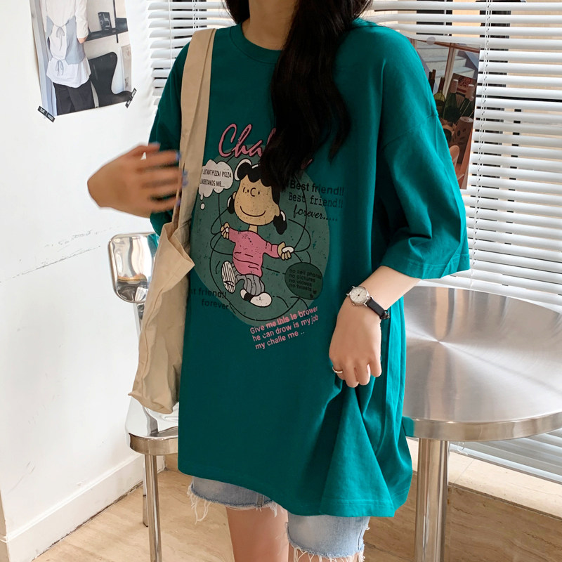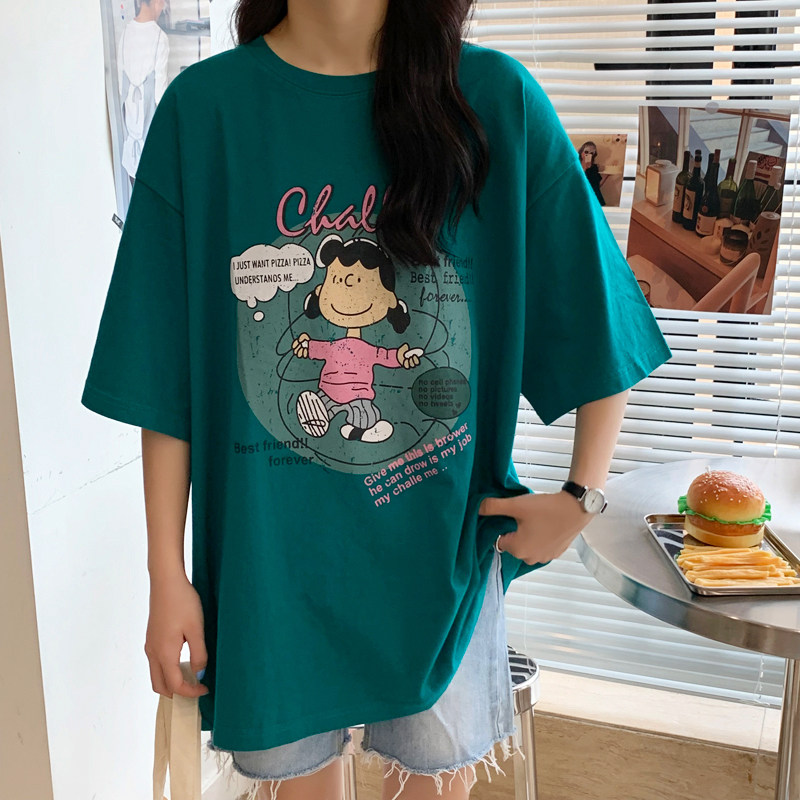 Short sleeve T-shirt women's medium long half sleeve cartoon top printing