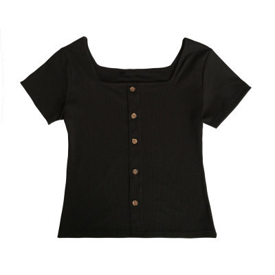 Popular retro style square collar ins short sleeve T-shirt women's summer dress 2020 new style foreign style short fit knitting top