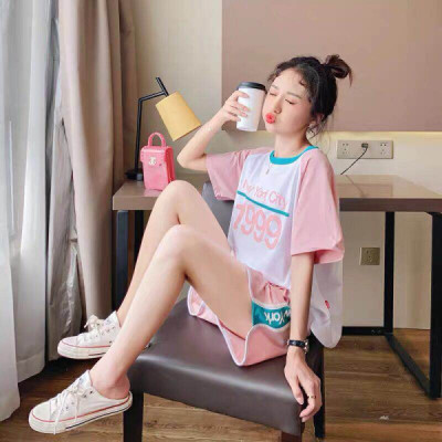 Tiktok, red hot two sets, fashion suit, girl student, Korean version, summer wear, new summer short sleeved T-shirt net red.