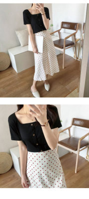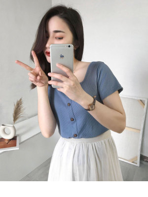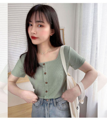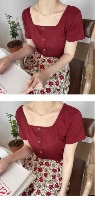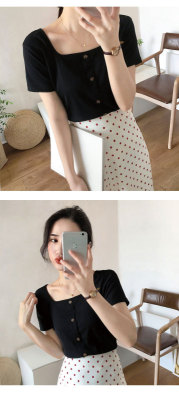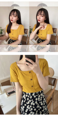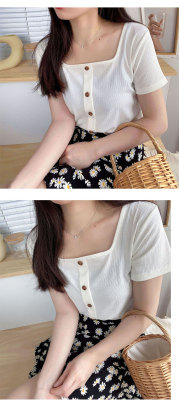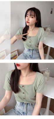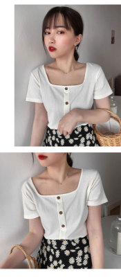 Retro square collar ins short sleeve T-shirt women's summer dress 2020 new style foreign style mind set small short slim collarbone top