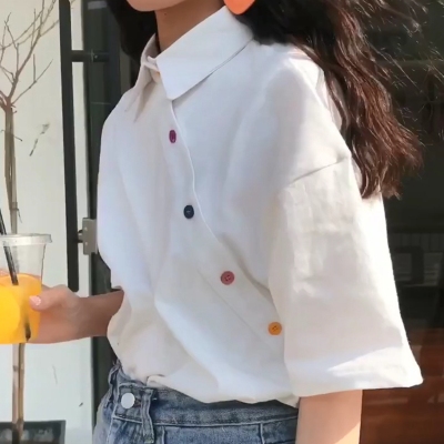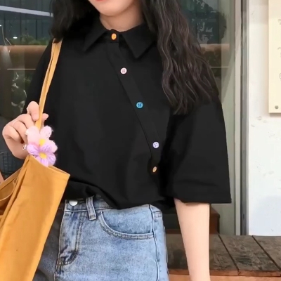 6535 Pullover COTTON POLO Shirt Short Sleeve T-Shirt women's fashionable and elegant loose top