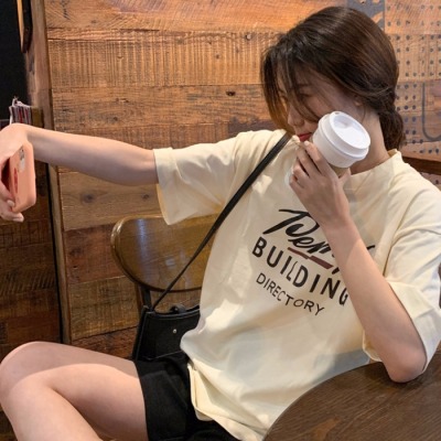 Short-sleeved t-shirt for women, Hong Kong style loose spring and summer Korean version ins trendy student Harajuku style versatile and strange smell large size top body shirt