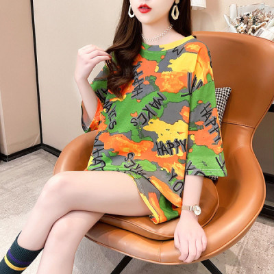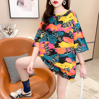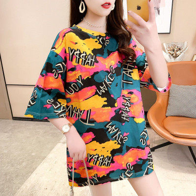 Net red short sleeve T-shirt women's mid long summer 2021 new loose fit Korean boudoir loose T-shirt