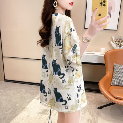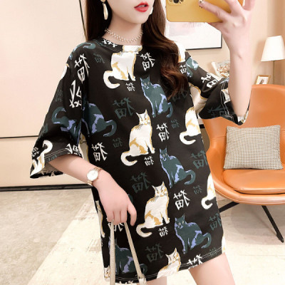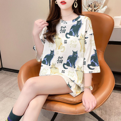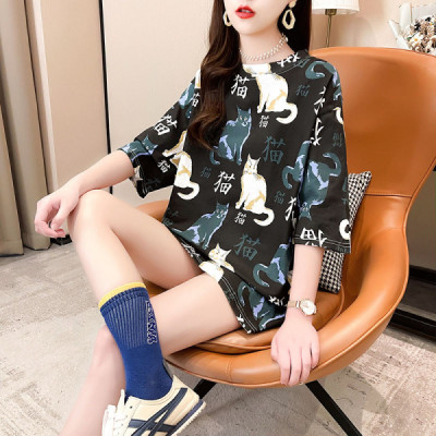 Real shooting season new Korean style loose large women's fat medium length top fashion
