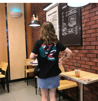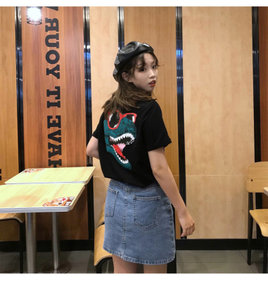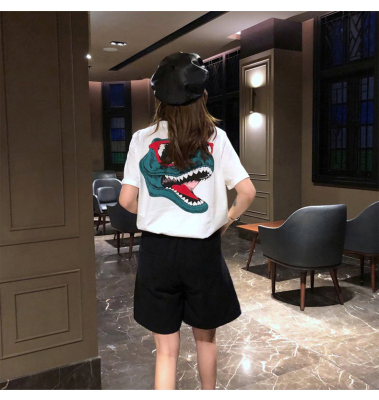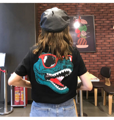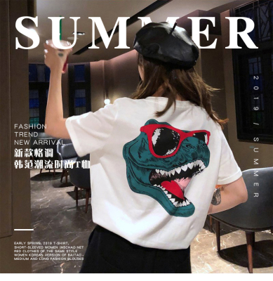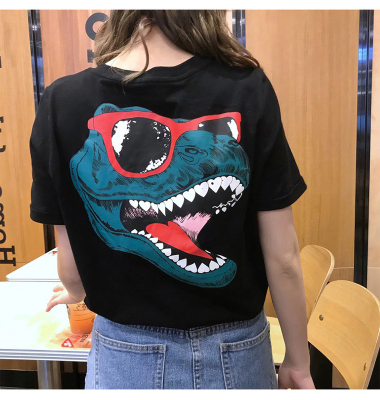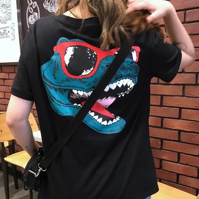 Official summer new Korean dinosaur clothes net red short sleeve T-shirt women's Hong Kong Style couple loose top