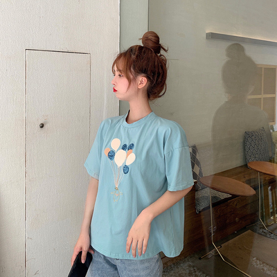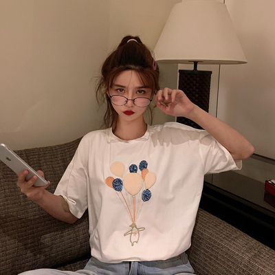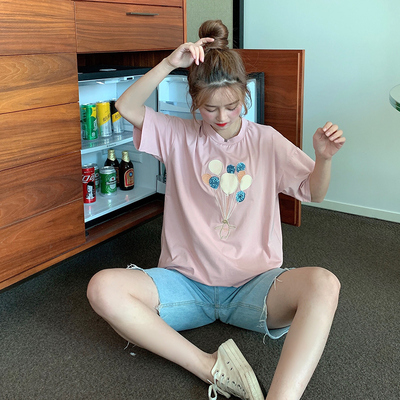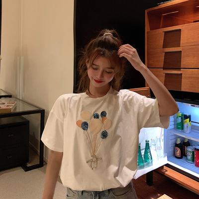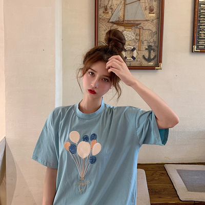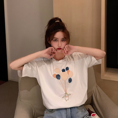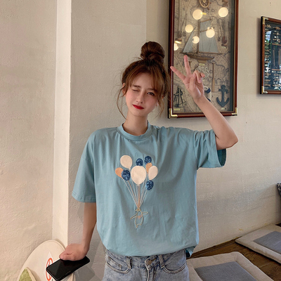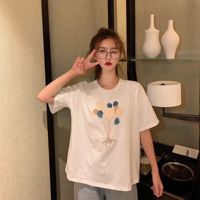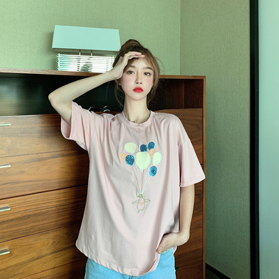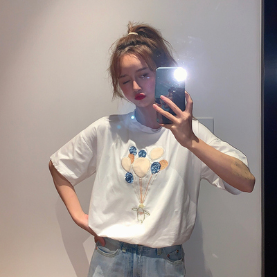 Real shot short sleeve T-shirt women's summer 2021 new Korean tide thorn embroidered top large women's clothing
