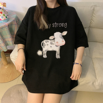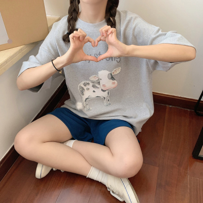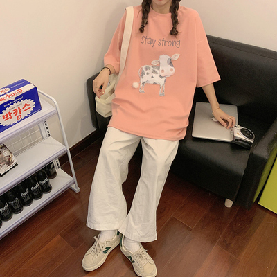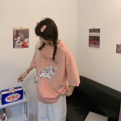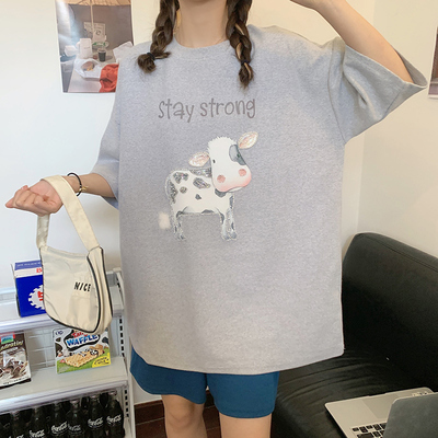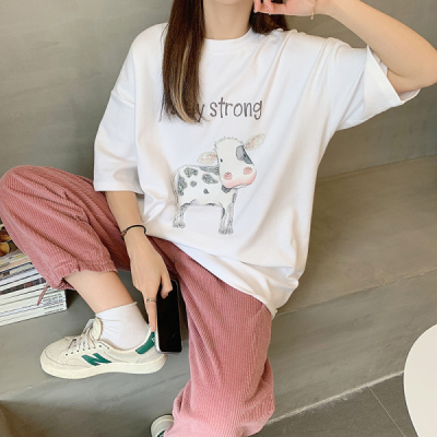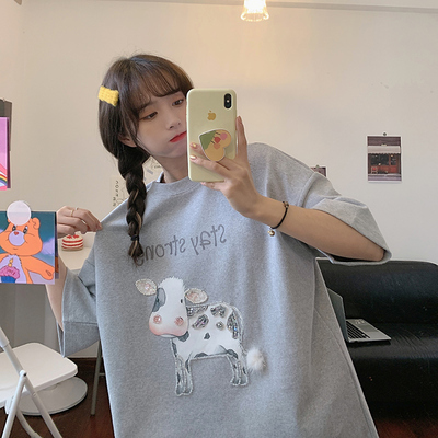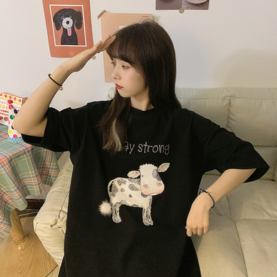 實拍棉新款夏裝韓版短袖恤刺繡花女潮寬鬆大碼上衣女裝