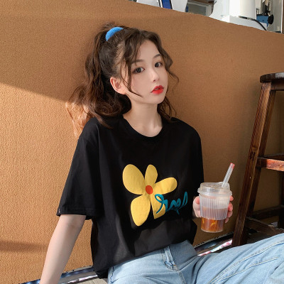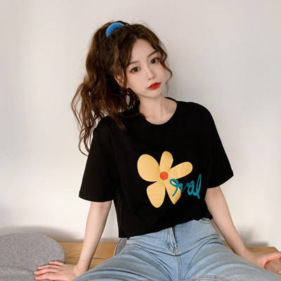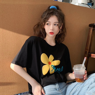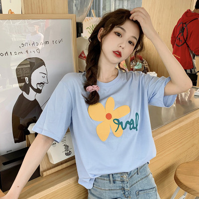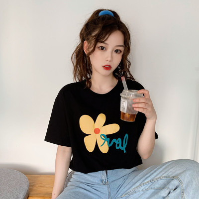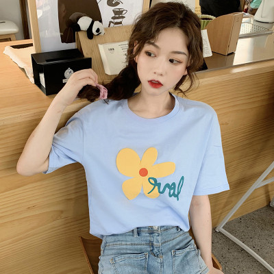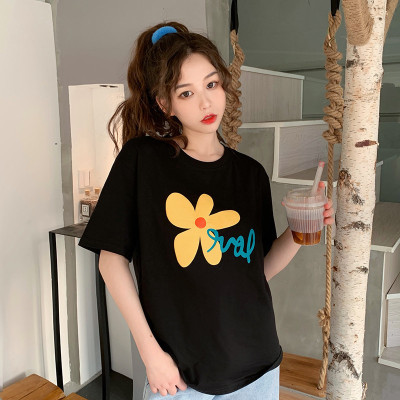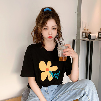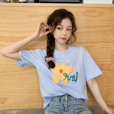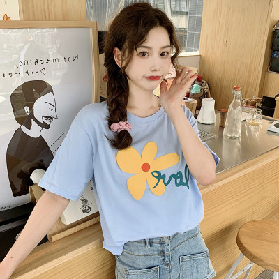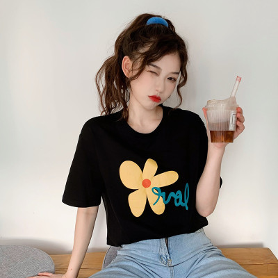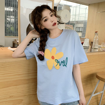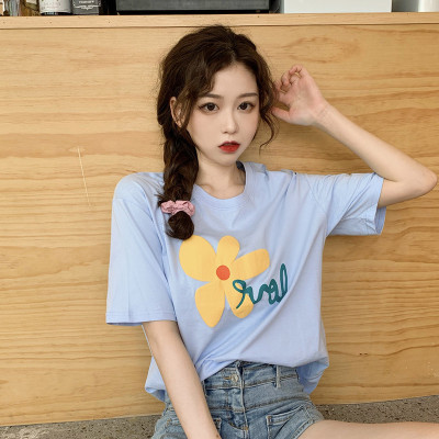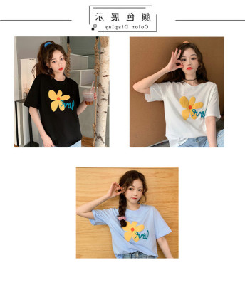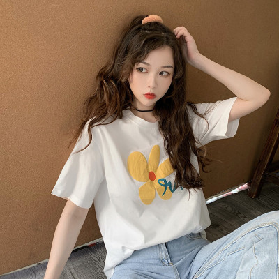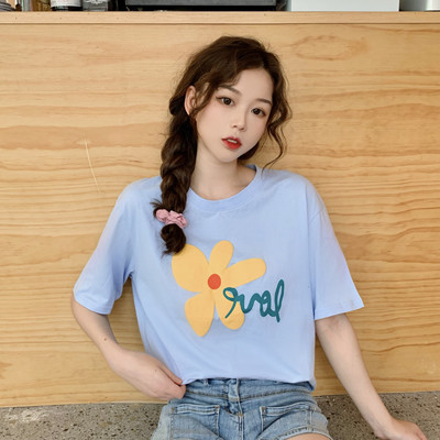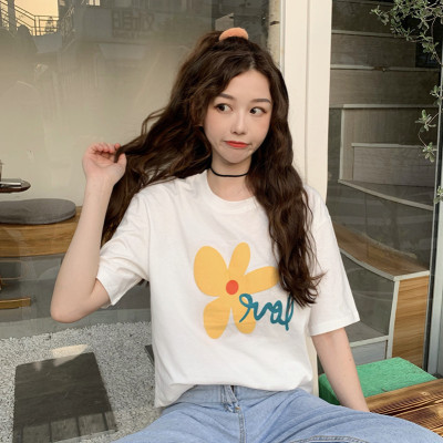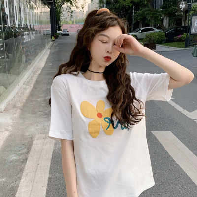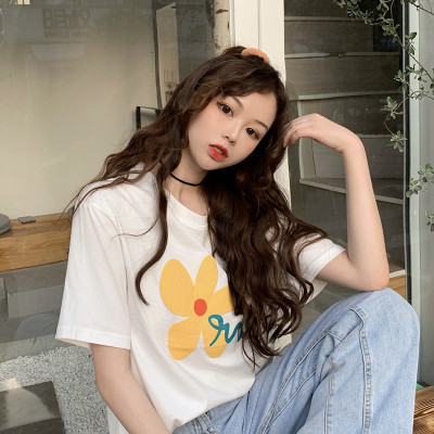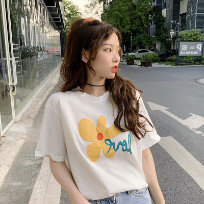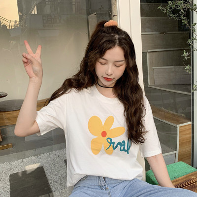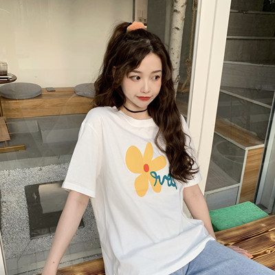 Loose and lovely age reducing Daisy letter printed white short sleeve T-shirt